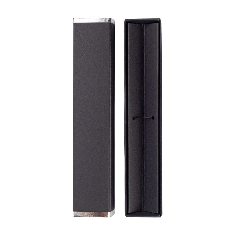Бумажная коробочка для ручки. Ложемент V-образный с резинкой, фиксирующей ручку. По краям крышки металлизированные декоративные элементы, для красоты. В такой коробочке подаренная ручка будет выглядеть ещё дороже, словно фотомодель в вечернем платье.