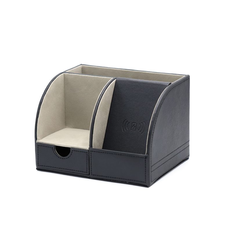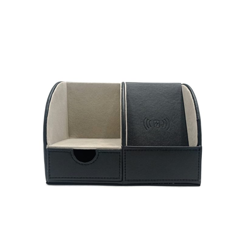 Органайзер “Форма” имеет встроенную беспроводную зарядку, что выгодно отличает его от аналогов. Данная модель имеет качественно покрытие из кожзама и много отделений для офисных мелочей. Вход: 5V-2A / 9V-1.67A. Выход: 7.5W/10W. В комплекте кабель USB и инструкция.