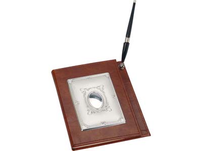 Оригинальный настольный набор включает в себя записную книжку и ручку. Обложка блокнота украшена изысканным декором и оснащена держателем для ручки. Такой стильный и практичный аксессуар станет достойным дополнением рабочего стола и подойдет для использования в любой сфере деятельности.