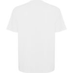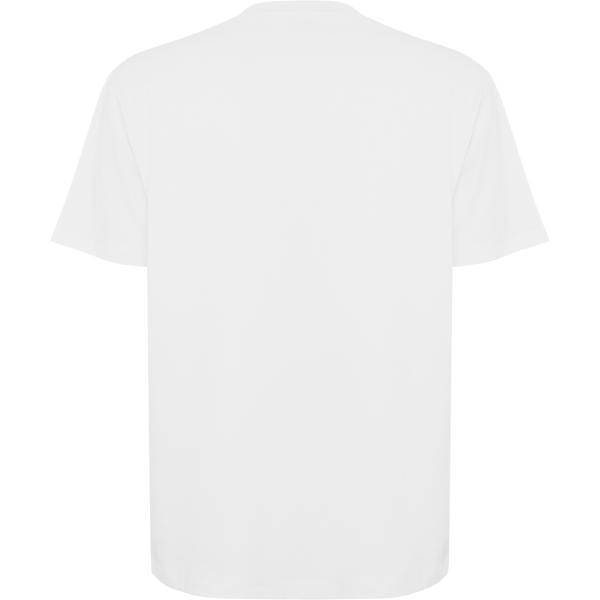 Футболка свободного кроя оверсайз с короткими рукавами. Круглый вырез горловины с отделкой резинкой 2×1 и оверлочными швами в тон. Боковые швы. Широкая двойная строчка на рукавах и по нижнему краю.