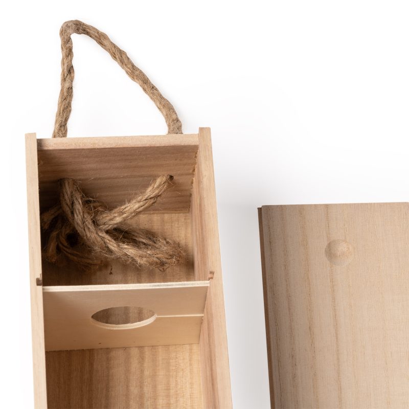 Деревянный ящик с ручкой станет идеальным дополнением для безопасной и элегантной транспортировки бутылки вина.